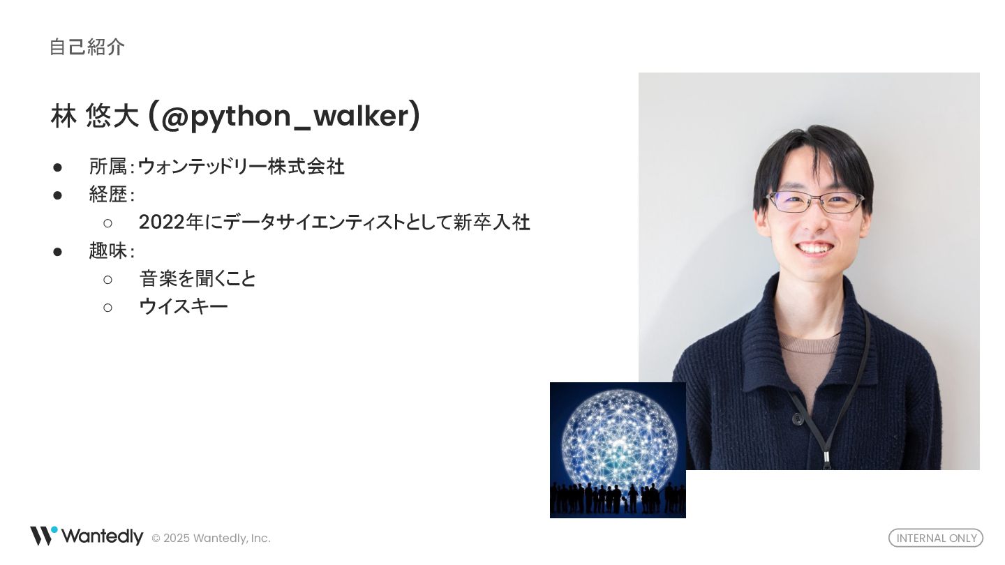 © 2025 Wantedly, Inc. INTERNAL ONLY 自己紹介 林 悠大 (@python_walker)
