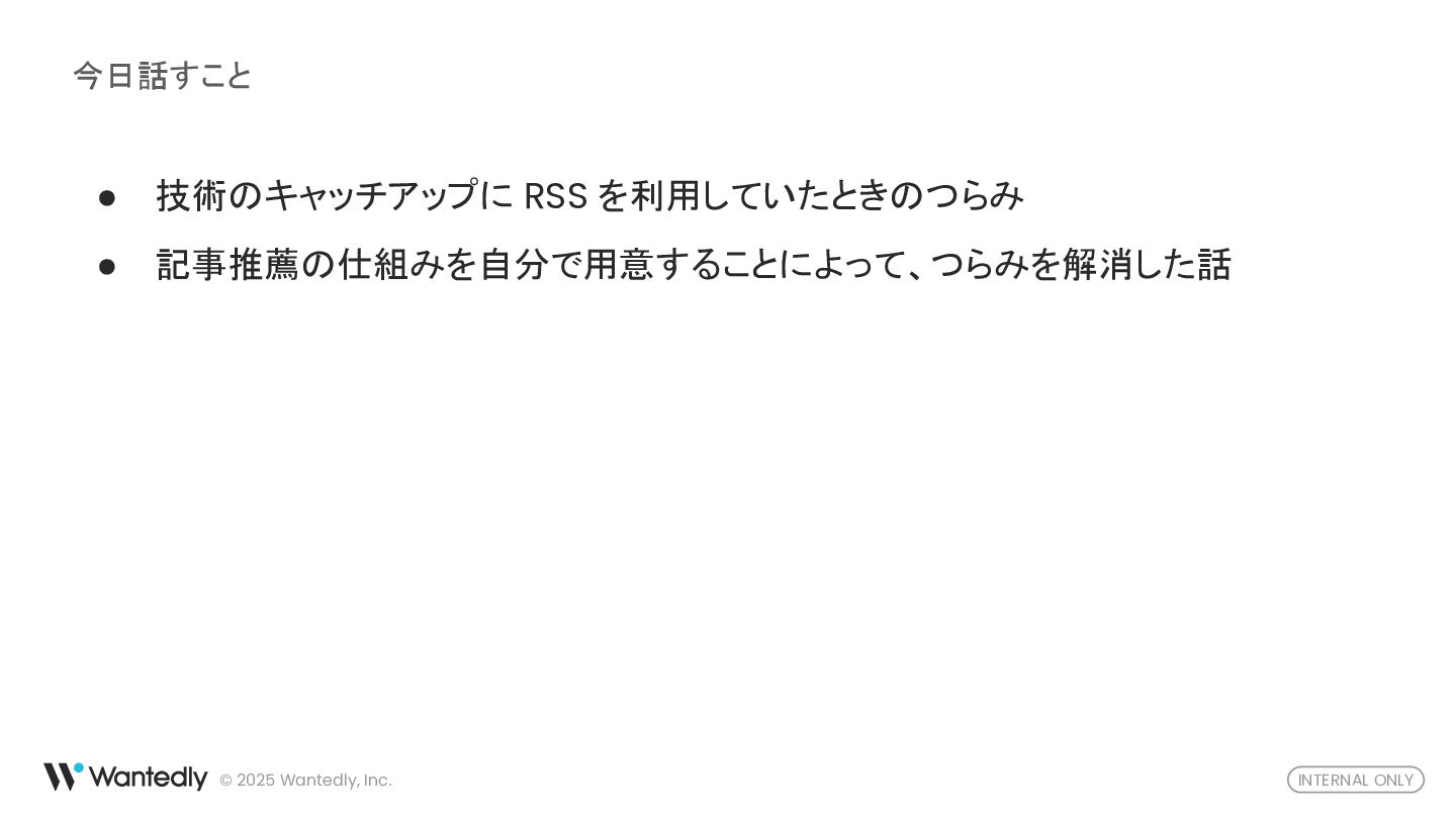 © 2025 Wantedly, Inc. INTERNAL ONLY 今日話すこと • 技術のキャッチアップに RSS