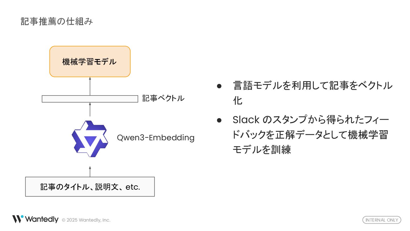 © 2025 Wantedly, Inc. INTERNAL ONLY 記事推薦の仕組み • 言語モデルを利用して記事をベクトル 化
