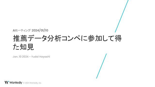 © 2024 Wantedly, Inc. 推薦データ分析コンペに参加して得 た知見 AIミーティング 2024/01/10 Jan. 10
