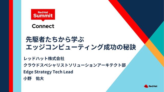 先行企業のエッジコンピューティングの取り組みから、エッジコンピューティングに取り組む理由、エッジコンピューティングの成功に向けて策定した戦略と実行マイルストン、その上でRed Hatが貢献する価値について、3本柱でお話ししました。