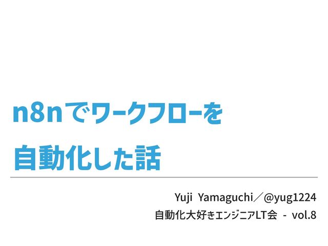 n8n で ワークフローを ⾃動化した話 Yuji Yamaguchi/@yug1224 ⾃動化⼤好きエンジニアLT会 - vol.8