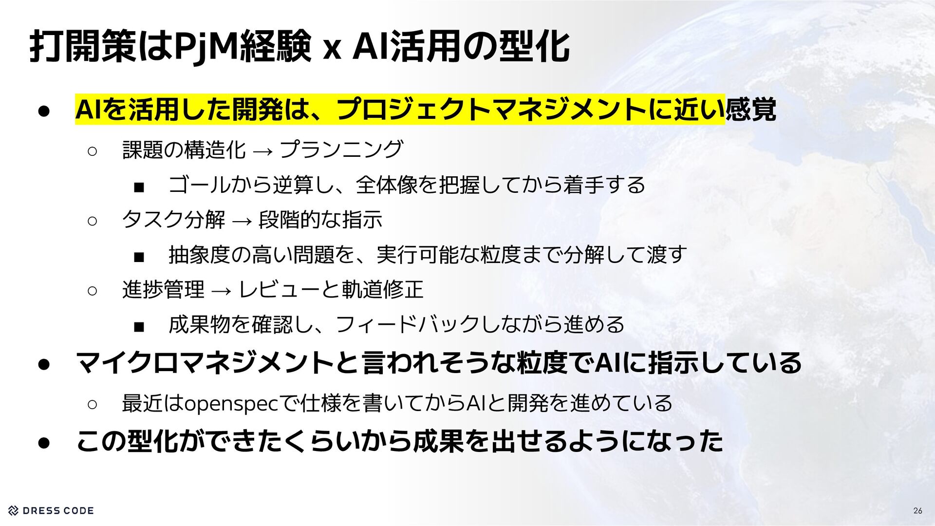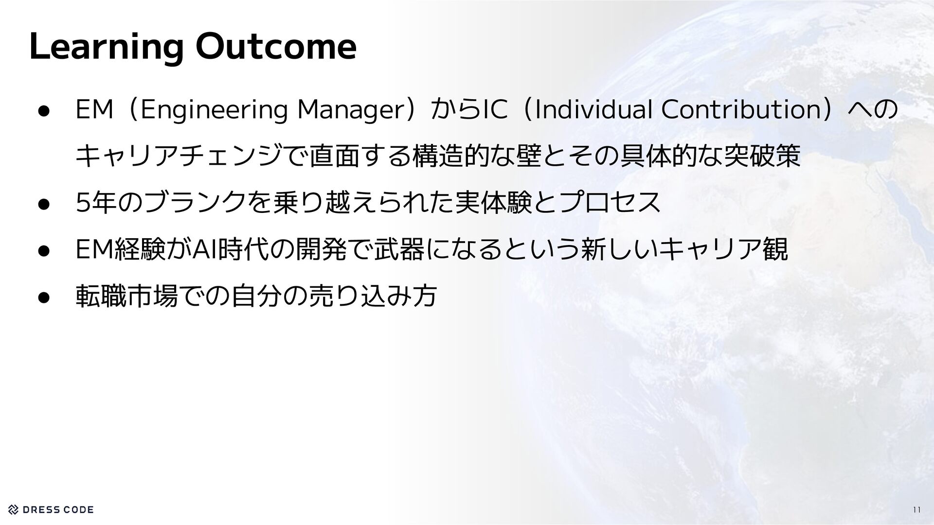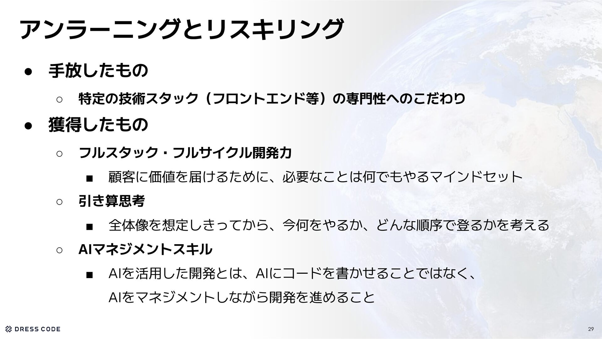14.1億円 資金調達を実施 Pre Seed&Seed Round 200+社 が利用中 Number of companies Number of countries 5カ国 で事業を展開 会社概要 Company Name / 会社名 Dress Code 株式会社 2024年9月 正式創業:2025年4月 39名 東京都中央区築地2-1-4 銀座PREX East 8F CEO / 代表取締役 Date of establishment / 設立年月 Location / 所在地 江尻 祐樹 Member / メンバー数 6