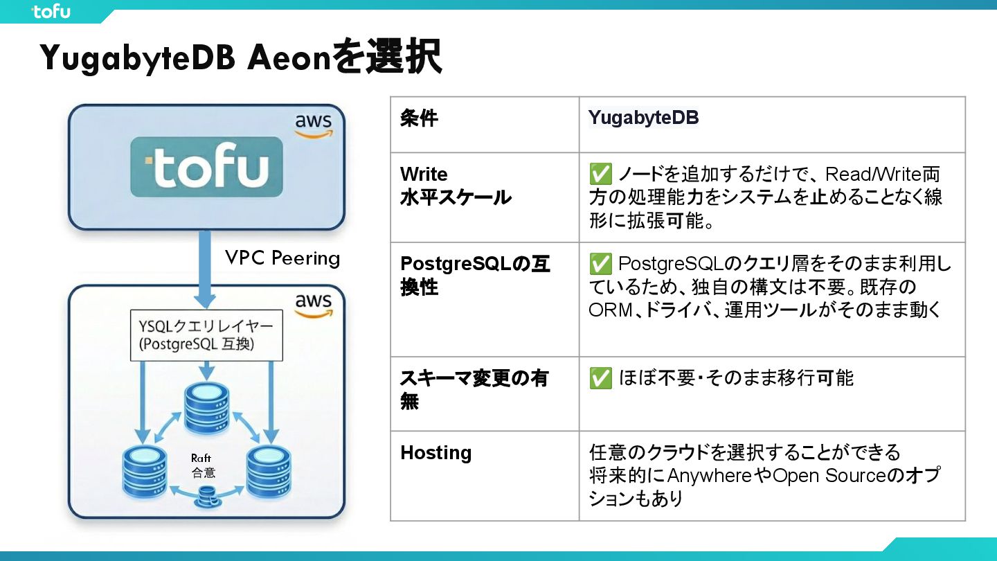 Presented by Ken Kanai, VP of Engineering at Tofu at YugabyteDB Japan Meetup #7