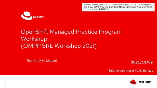 本資料は、Red Hat OpenShift を運用されているパートナー様へのプログラム OMPP (OpenShift Managed Practice Program) の勉強会で使用された資料から一般公開できそうな部分を抽出した抜粋版です。