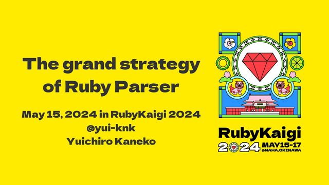 Parser Roadmap”, https://docs.google.com/presentation/d/ 1E4v9WPHBLjtvkN7QqulHPGJzKkwIweVfcaMsIQ984_Q Yuichiro Kaneko. “Ruby Parser։ൃࢽ (12) - LR parser generatorͷఏڙ͢Δจ๏ͷ݈શੑ”, September 2023. https://yui-knk.hatenablog.com/entry/2023/09/19/191135 Yuichiro Kaneko. “Ruby Parser։ൃࢽ (14) - LR parserશʹཧղͨ͠”, December 2023. https://yui-knk.hatenablog.com/entry/2023/12/06/082203 Lukas Diekmann and Laurence Tratt. “Don’t Panic! Better, Fewer, Syntax Errors for LR Parsers”, July 2020. https://arxiv.org/pdf/1804.07133.pdf Joel E. Denny. “PSLR(1): Pseudo-Scannerless Minimal LR(1) for the Deterministic Parsing of Composite Languages”, May 2010. https://tigerprints.clemson.edu/cgi/viewcontent.cgi? article=1519&context=all_dissertations