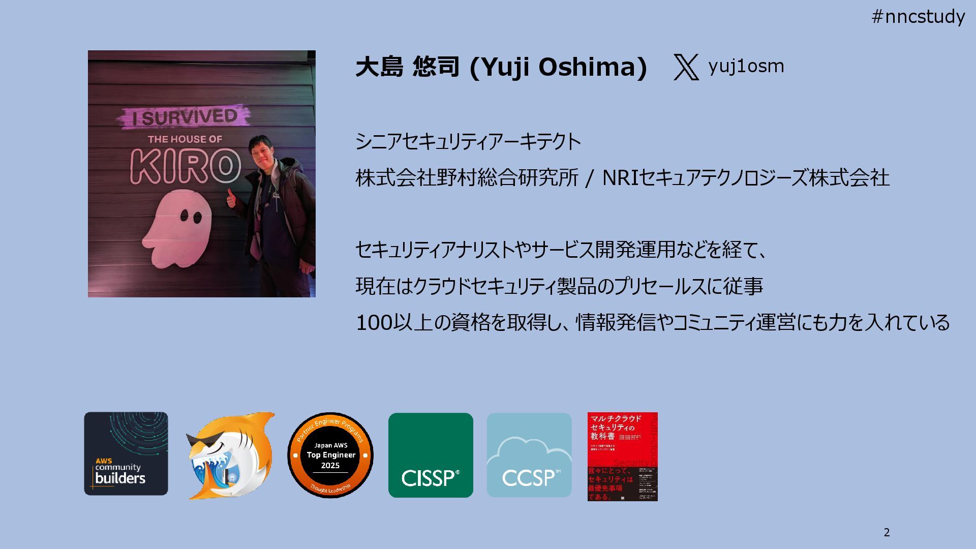 現在はクラウドセキュリティ製品のプリセールスに従事 100以上の資格を取得し、情報発信やコミュニティ運営にも力を入れている yuj1osm #nncstudy