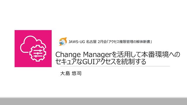Change Managerを活用して本番環境への セキュアなGUIアクセスを統制する 大島 悠司 JAWS-UG 名古屋 2月会「アクセス権限管理の解体新書」