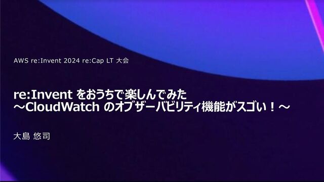 re:Invent をおうちで楽しんでみた ~CloudWatch のオブザーバビリティ機能がスゴい!~ 大島 悠司 AWS re:Invent 2024 re:Cap