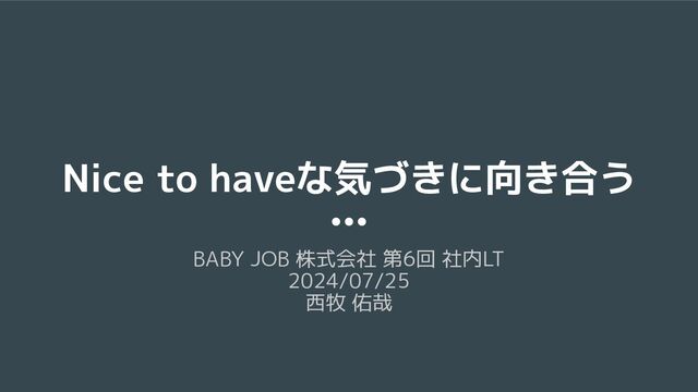 Nice to haveな気づきに向き合う BABY JOB 株式会社 第6回 社内LT 2024/07/25 西牧