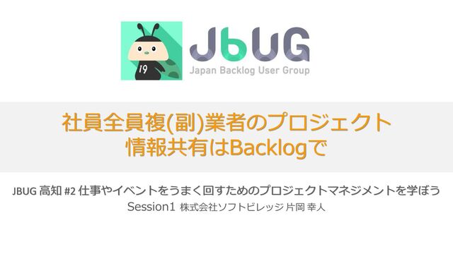 社員全員複(副)業者のプロジェクト 情報共有はBacklogで JBUG 高知 #2 仕事やイベントをうまく回すためのプロジェクトマネジメントを学ぼう Session1 株式会社ソフトビレッジ 片岡 幸人
