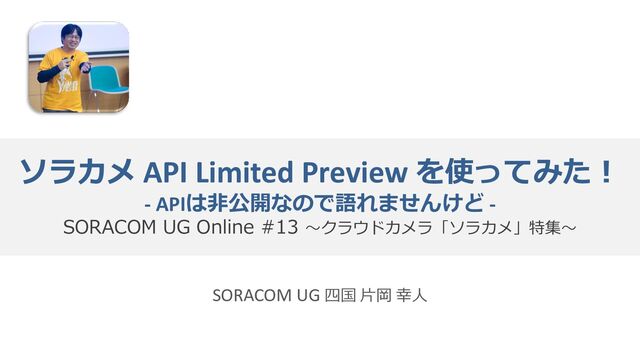 Online #13 〜クラウドカメラ「ソラカメ」特集〜 SORACOM UG 四国 片岡 幸人