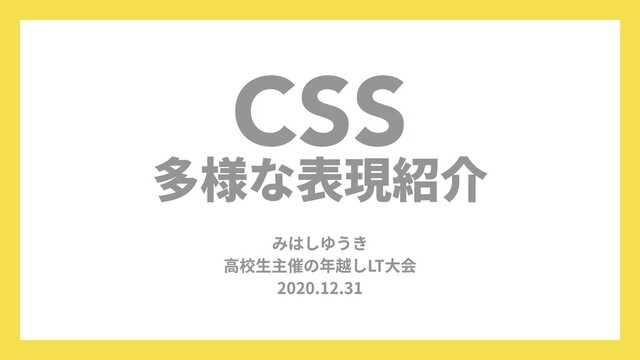 CSS 多様な表現紹介 みはしゆうき 高校生主催の年越しLT大会 2020.12.31