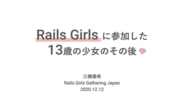 Rails Girls に参加した 13歳の少女のその後 三橋優希 Rails Girls Gathering Japan 2020.12.12