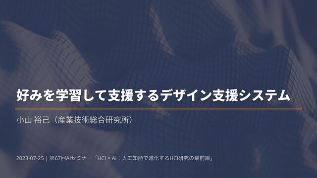 第67回産総研AIセミナー「HCI × AI:人工知能で進化するHCI研究の最前線」