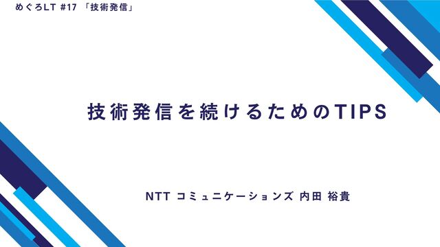 めぐろLT #17 「技術発信」 NTT コミュニケーションズ 内田 裕貴 技術発信を続けるためのTIPS