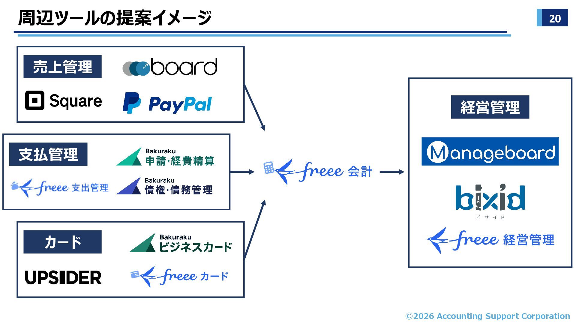 20 Ⓒ2026 Accounting Support Corporation 周辺ツールの提案イメージ 売上管理 支払管理 カード 経営管理