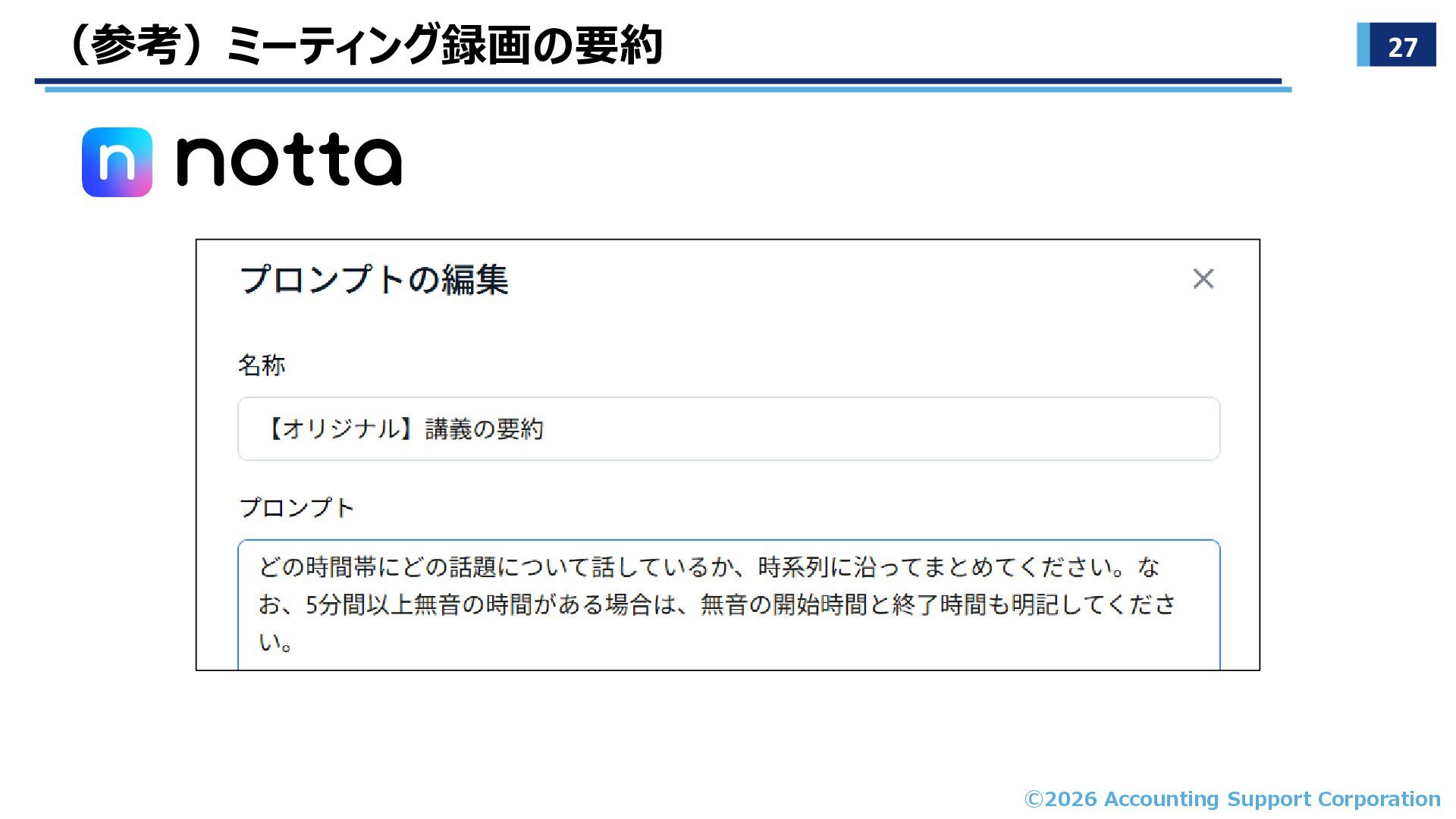 27 Ⓒ2026 Accounting Support Corporation (参考)ミーティング録画の要約