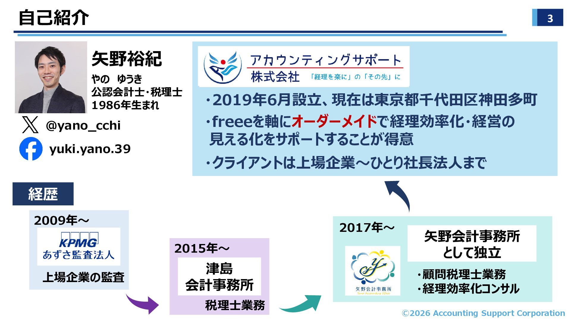 3 Ⓒ2026 Accounting Support Corporation 2009年~ 上場企業の監査 矢野裕紀 やの ゆうき