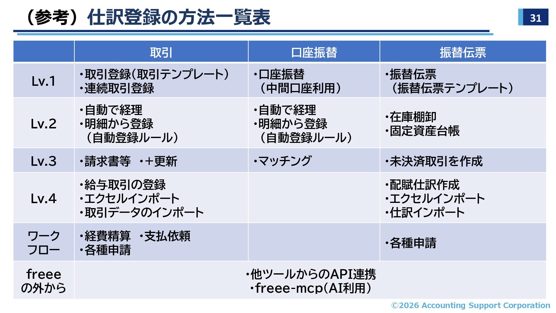 31 Ⓒ2026 Accounting Support Corporation (参考)仕訳登録の方法一覧表 取引 口座振替 振替伝票 Lv.1