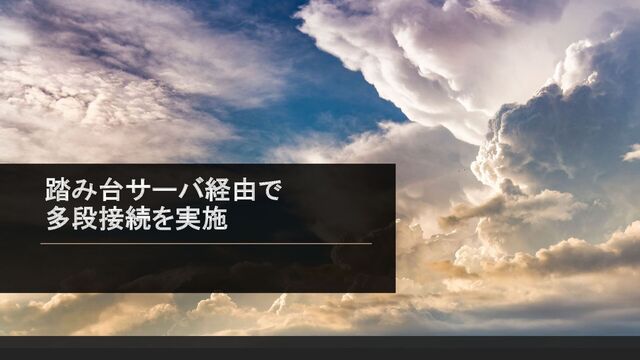 パブリックIPアドレス>’ -i <目的サーバの秘密鍵のパス> opc@<目的サーバのプライベートIPアドレス> l ssh -o ProxyCommand=‘ssh -i <踏み台サーバの秘密鍵のパス> -W %h:%p opc@<踏み台サーバのパブリック IPアドレス > :目的のホストに直接接続せず、指定されたプロキシコマンドを使用して中継経由で接続を確立。 l -W %h:%p:プロキシサーバを通してトンネルを確立するためのオプション。 lSCPコマンドでファイル転送を行う場合 scp -o ProxyCommand=‘ssh -i <踏み台サーバの秘密鍵のパス> -W %h:%p opc@<踏み台サーバの パブリックIPアドレス>’ –i <目的サーバの秘密鍵のパス> <転送対象のファイル> opc@<目的サーバの プライベートIPアドレス>:<転送先のパス>