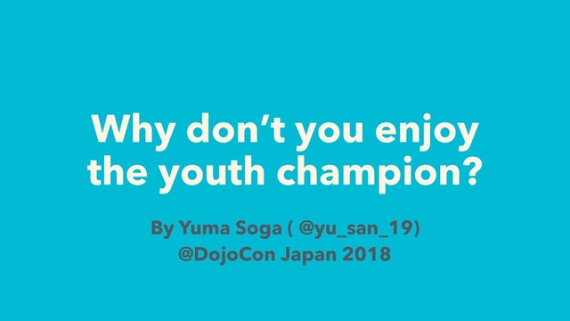 セッションの詳細 ~ Why don't you enjoy the youth champion? ~ :