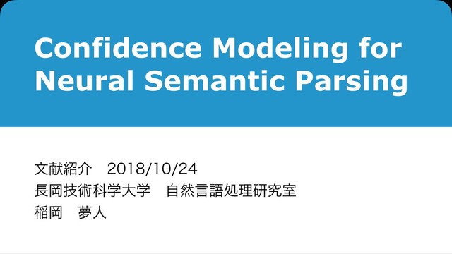 Confidence Modeling for Neural Semantic Parsing จݙհɹ Ԭٕज़Պֶେֶɹࣗવݴޠॲཧݚڀࣨ ҴԬɹເਓ