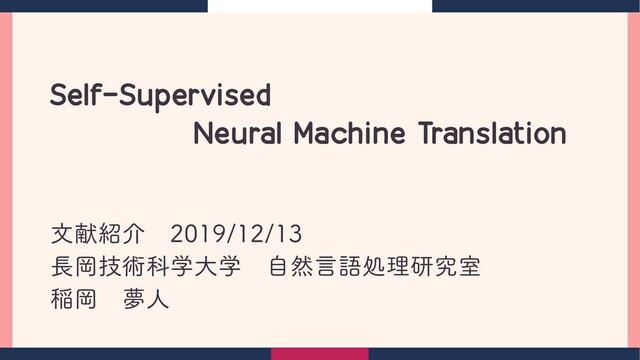 Self-Supervised Neural Machine Translation 文献紹介 2019/12/13 長岡技術科学大学 自然言語処理研究室 稲岡 夢人