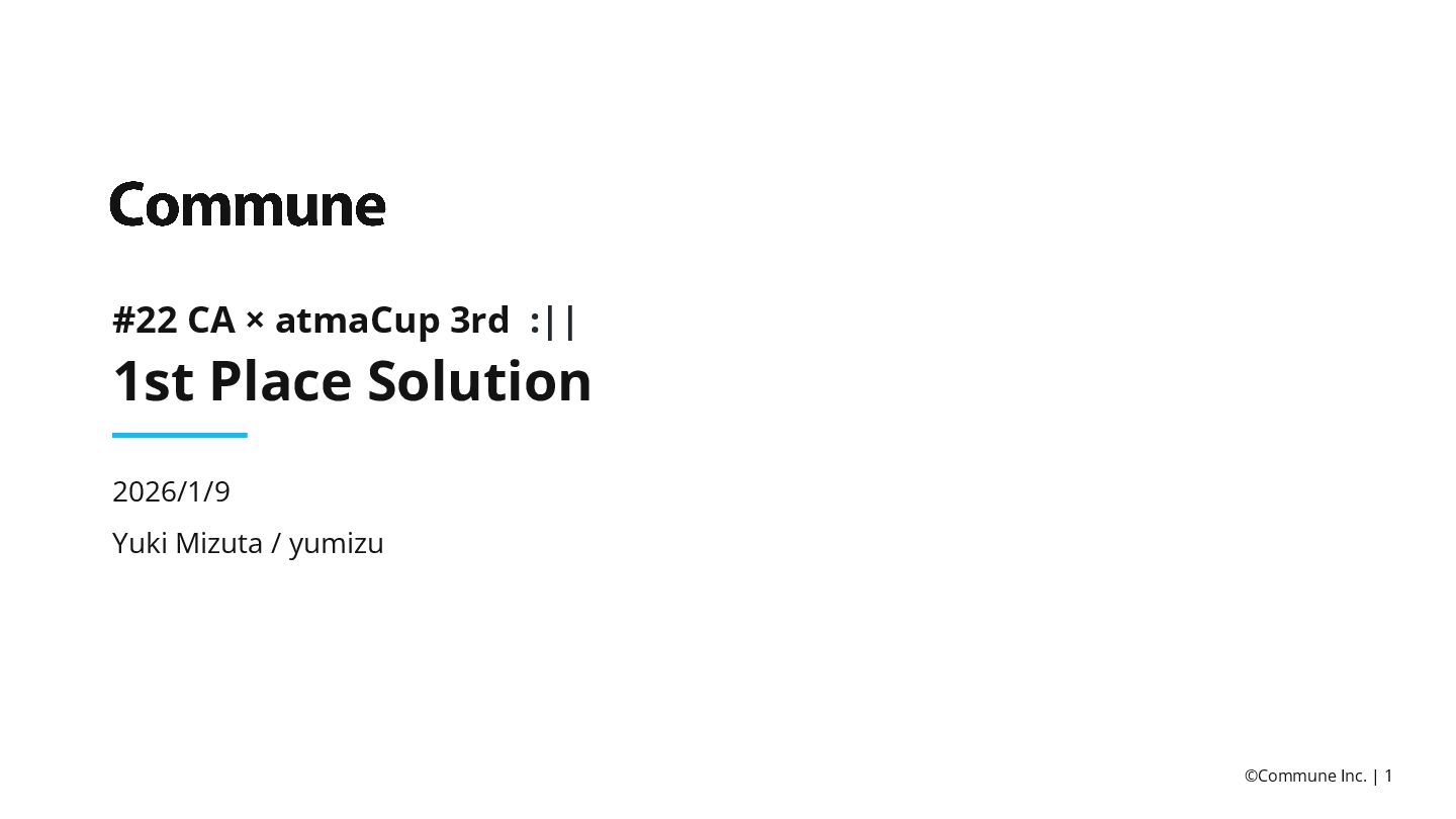 #22 CA x atmaCup 3rd 振り返り会の登壇資料 https://atma.connpass.com/event/380482/