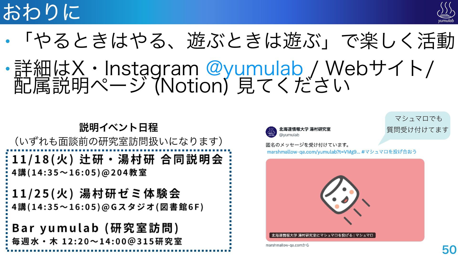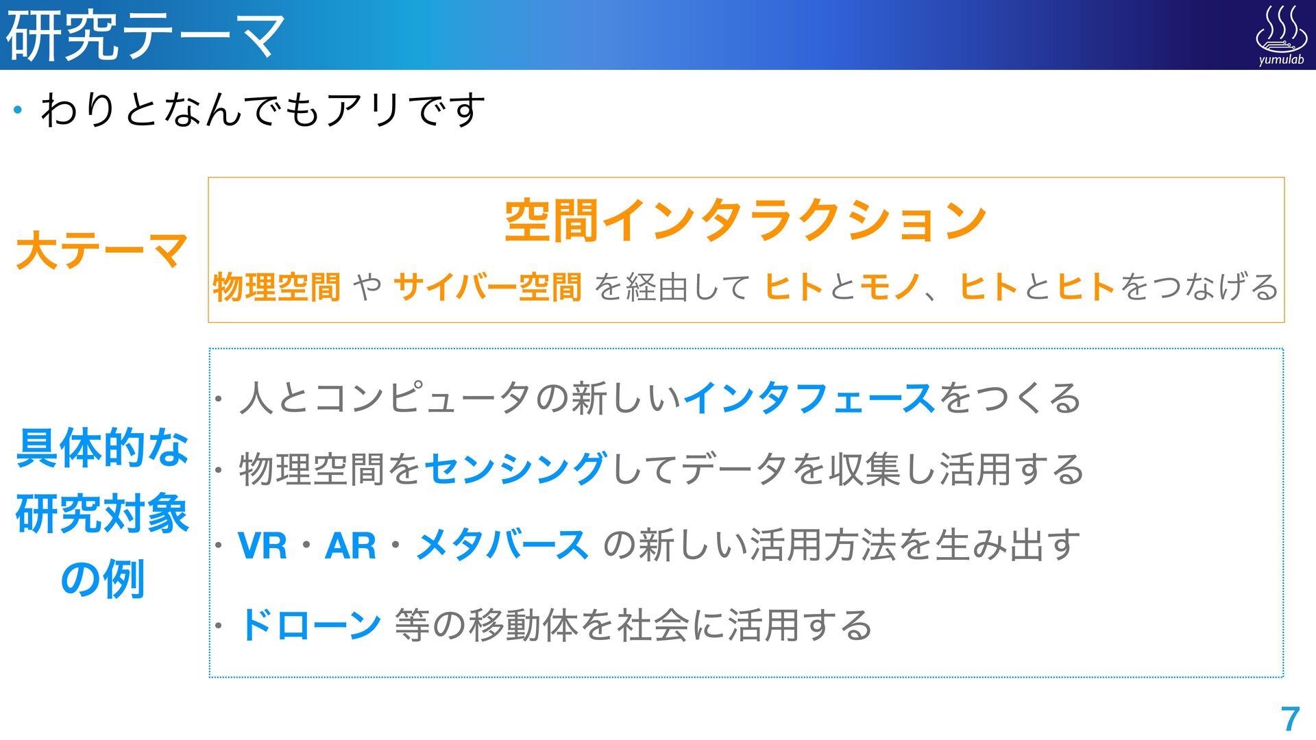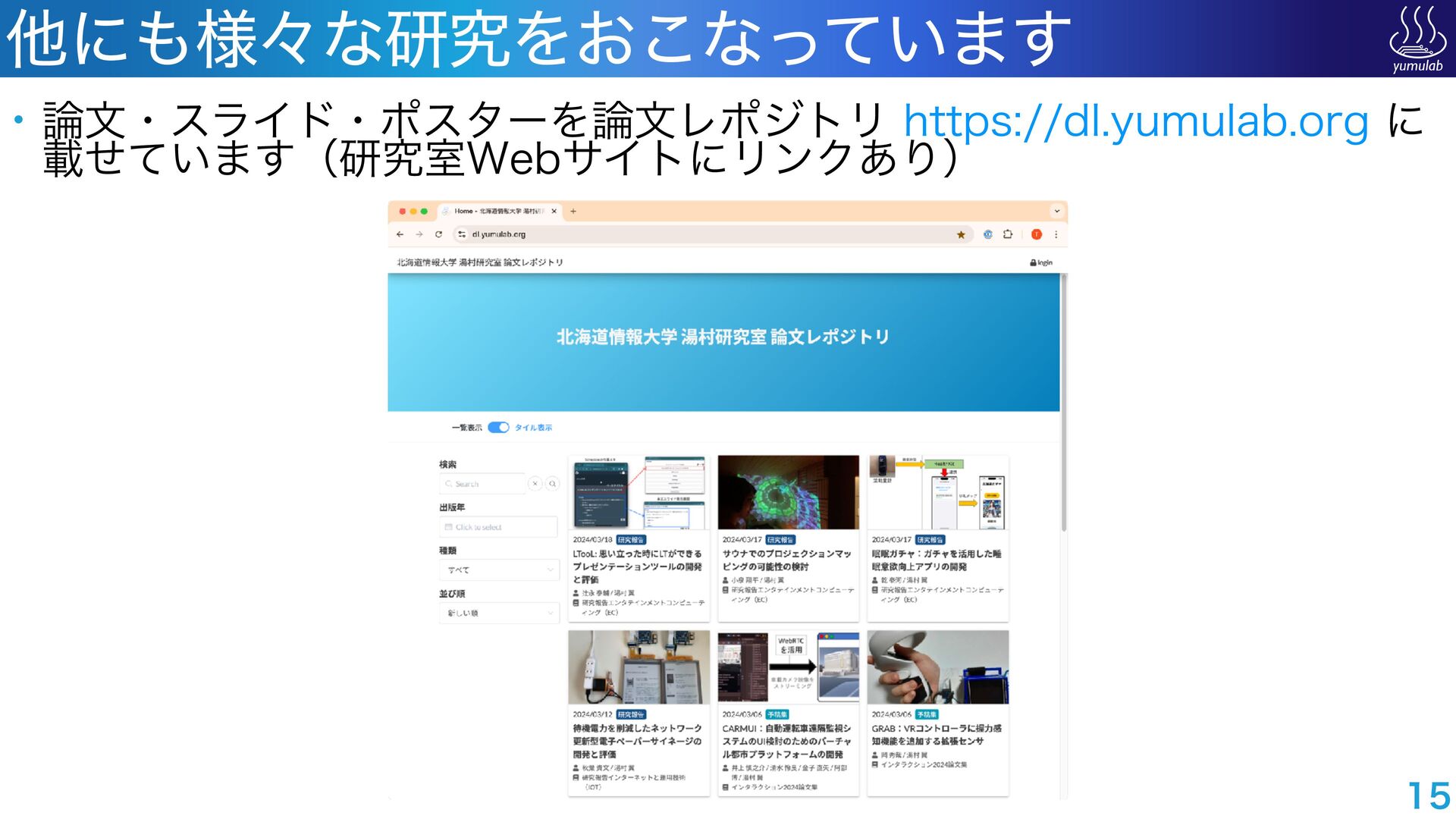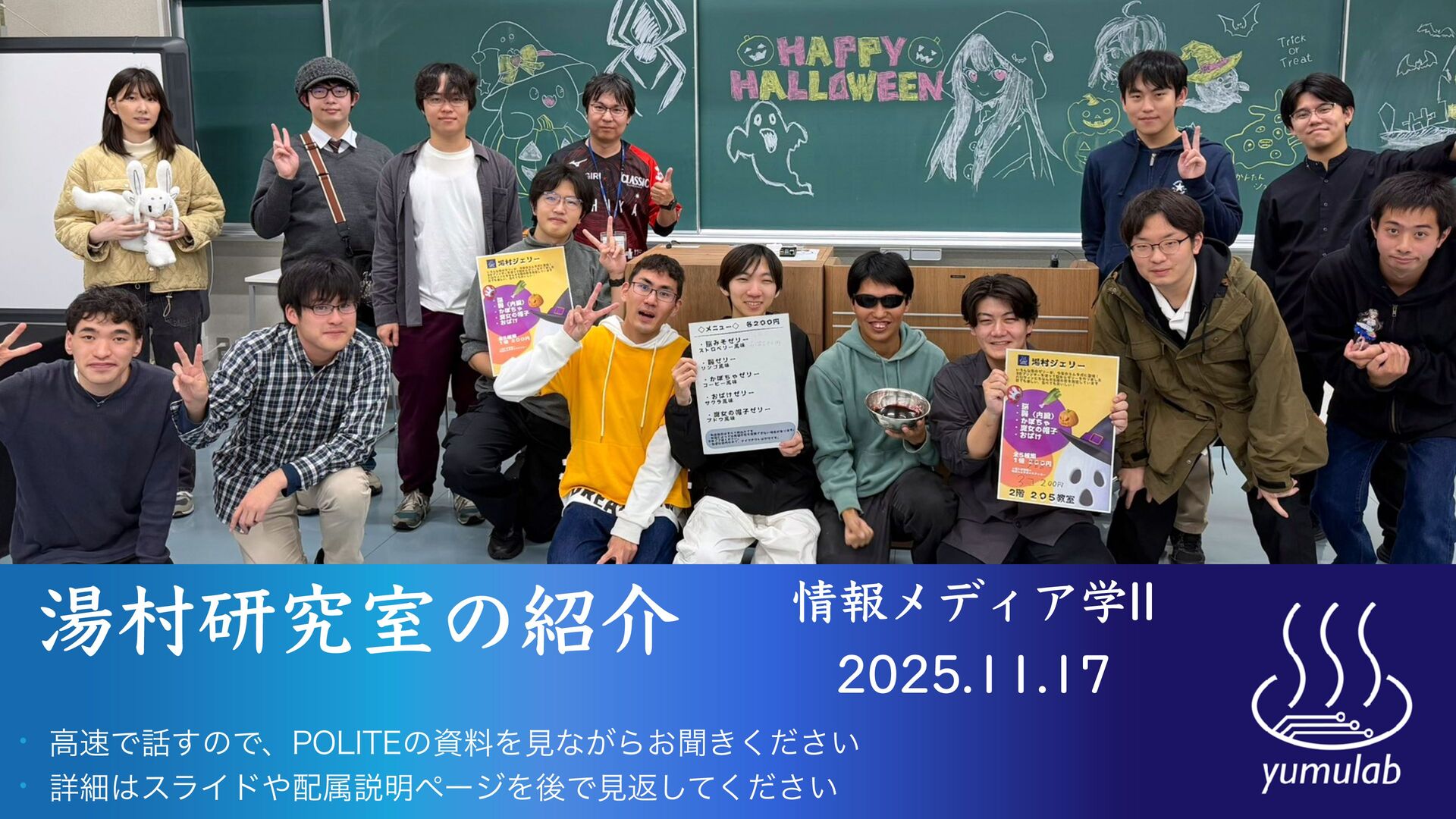 2025年11月17日(月)の情報メディア学IIで紹介した湯村研究室の説明資料