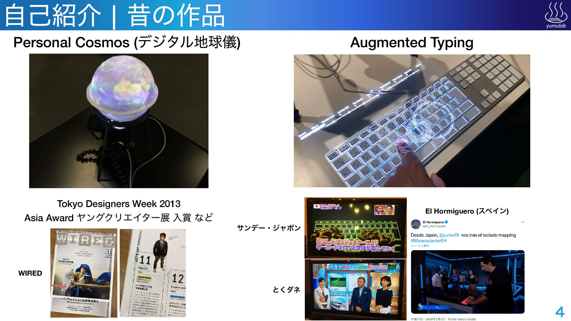 Award ϠϯάΫϦΤΠλʔల ೖ৆ ͳͲ ͱ͘μω αϯσʔɾδϟϙϯ El Hormiguero (εϖΠϯ) Augmented Typing αϯσʔɾδϟϙϯ ͱ͘μω WIRED