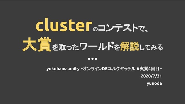 clusterのコンテストで、 大賞を取ったワールドを解説してみる yokohama.unity ~オンラインDEユルクヤッテル #実質4回目~ 2020/7/31 yunoda