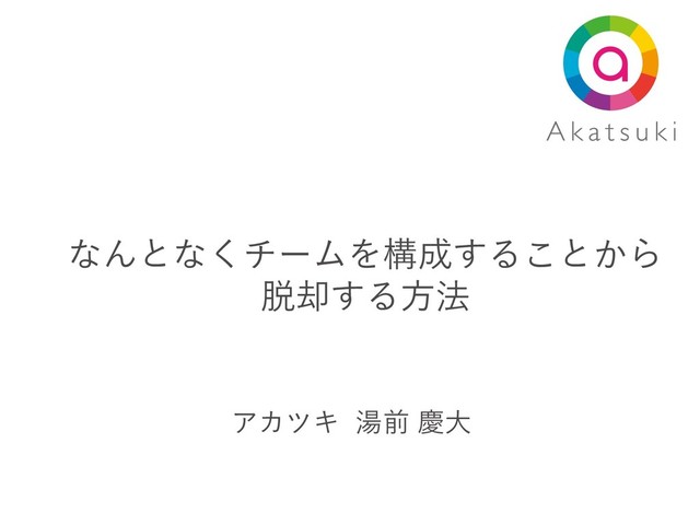 なんとなくチームを構成することから 脱却する⽅法 アカツキ 湯前 慶⼤