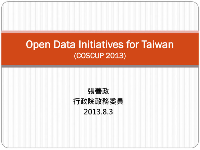 Taiwan has officially kicked off its open data initiative in late 2012, and government departments have begun to release its data since Q2, 2013. This initiative builds upon an existing Act of “Open Government Information” enacted years ago. Each government Ministry is required to identify a minimum of 5 data categories in the first trial phase (Mar. 2013), and 50 categories in the second phase, which ends in Dec. 2013.
