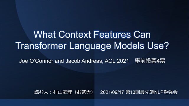 context + ordinary context) 情報量の差分が⼩さければ、仮定が成り⽴つ In 2000, producer David Heyman asked Radcliffe to audition for the role of Harry Potter for the film adaptation of Harry Potter and the Philosopher’s Stone, the best-selling book by British author J.K. Rowling. Rowling had been searching for an unknown British actor to personify the character, and the movie’s director Chris Columbus recalled thinking, ”This is what I want. This is Harry Potter”, after he saw a video of the young actor in David Copperfield. Eight months later, and after several auditions, Radcliffe was selected to play the part. Rowling also endorsed the selection saying, ”I don’t think Chris Columbus could have found a better Harry.” contextのどんな情報が有⽤なのか