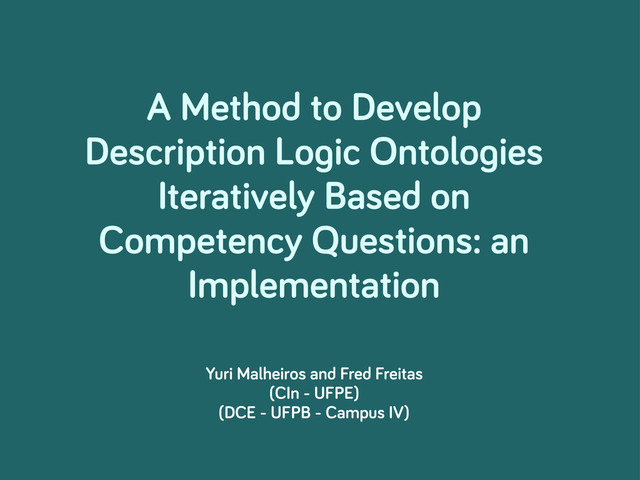 Based on Competency Questions: an Implementation Yuri Malheiros and Fred Freitas (CIn - UFPE) (DCE - UFPB - Campus IV)