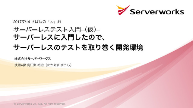 © Serverworks Co., Ltd. All right reserved. αʔόʔϨεʹೖͨ͠ͷͰɺ αʔόʔϨεͷςετΛऔΓר͘։ൃڥ 2017/7/14