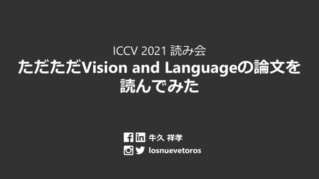 で紹介しました。 Vision and Language芸人としてICCV 2021で発表された関連論文約60本から独断と偏見でキュレーションしたものです。 これまでのVision and LanguageやTransformer自体を詳しく知りたい人はコンピュータビジョン最前線をご参照ください!(ダイマ) https://www.kyoritsu-pub.co.jp/bookdetail/9784320125421