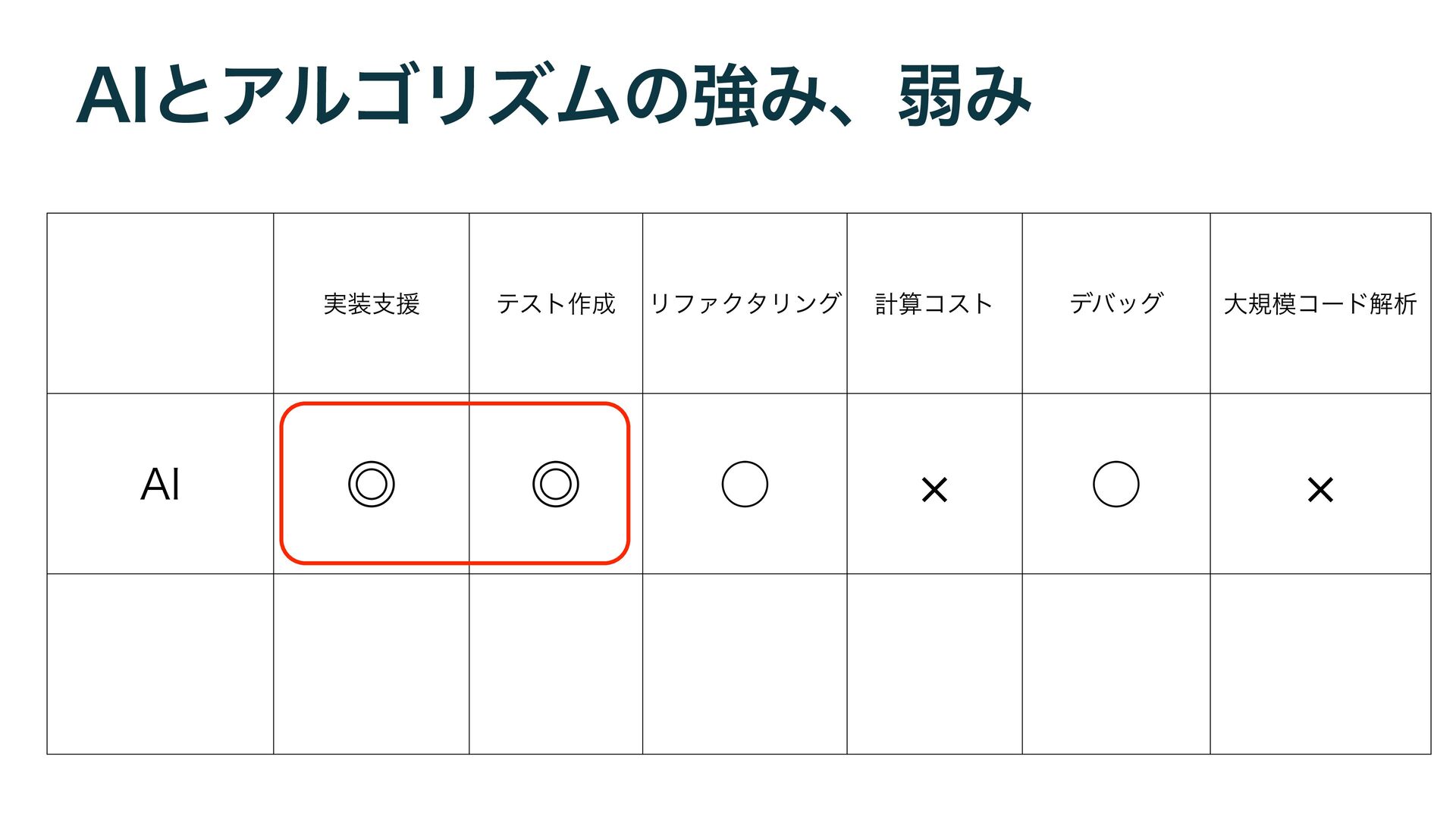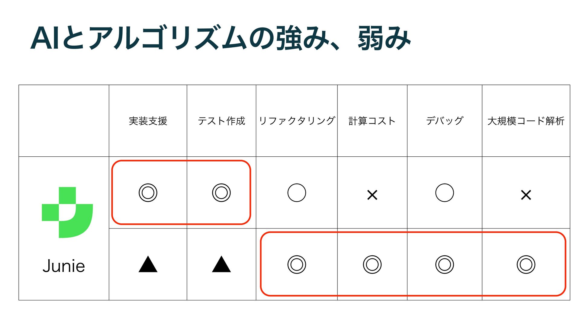 "*ͱΞϧΰϦζϜͷڧΈɺऑΈ ࣮ࢧԉ ςετ࡞ ϦϑΝΫλϦϯά ܭࢉίετ σόοά େنίʔυղੳ +VOJF ˕ ˕