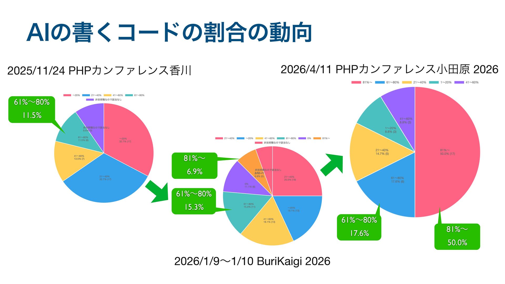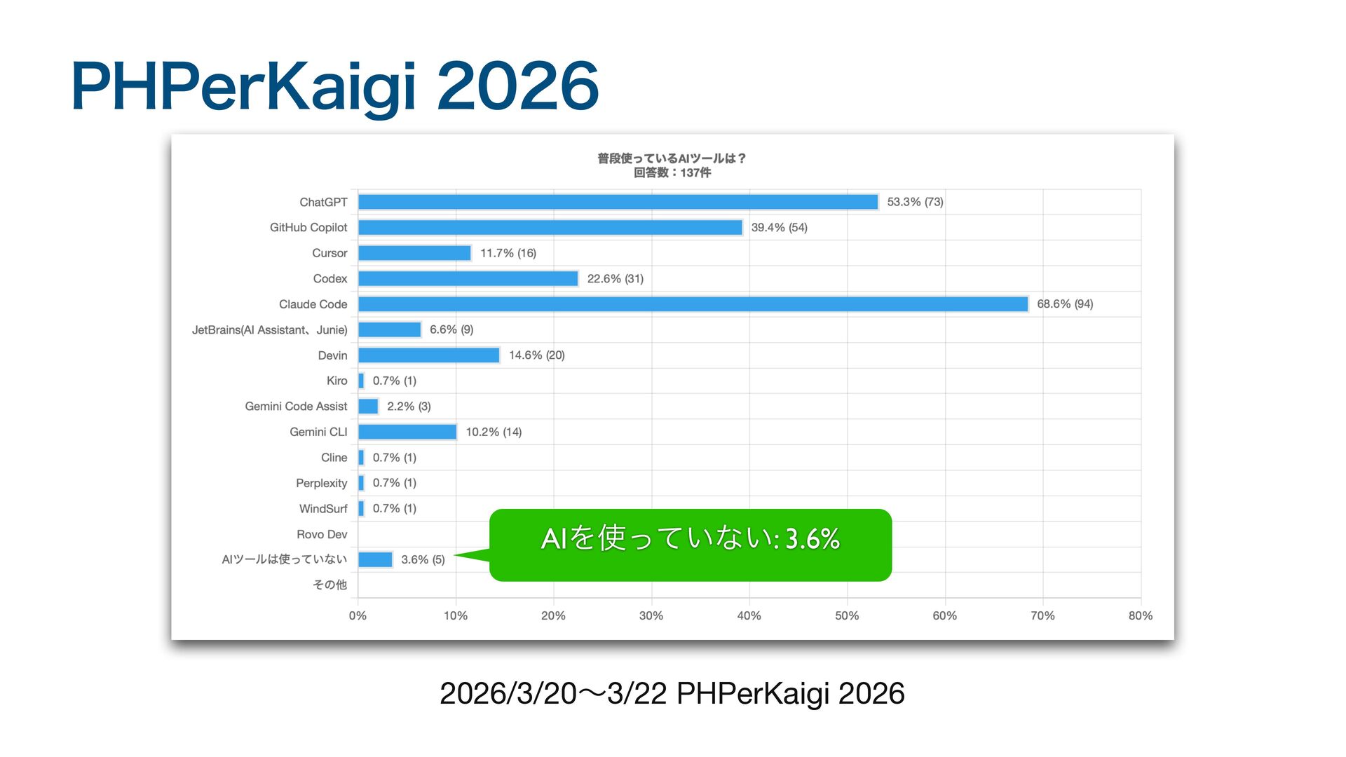 1)1FS,BJHJ 2026/3/20ʙ3/22 PHPerKaigi 2026 AIΛ͍ͬͯͳ͍: 3.6%