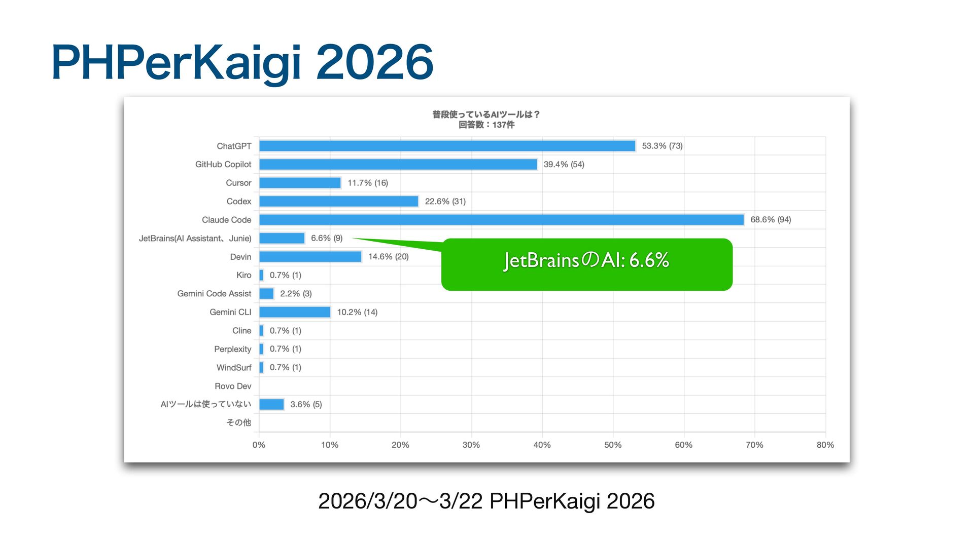 1)1FS,BJHJ 2026/3/20ʙ3/22 PHPerKaigi 2026 JetBrainsͷAI: 6.6%
