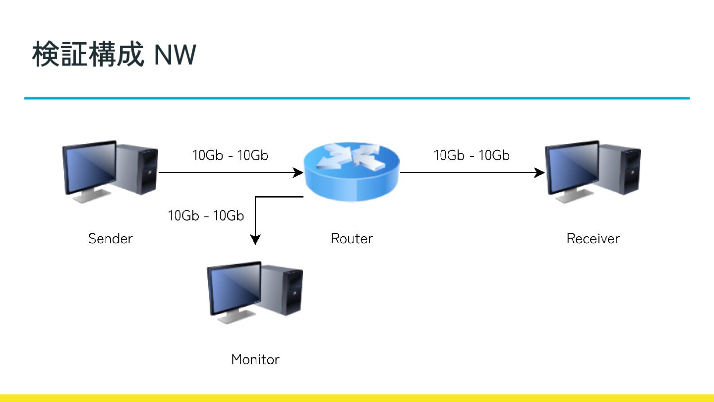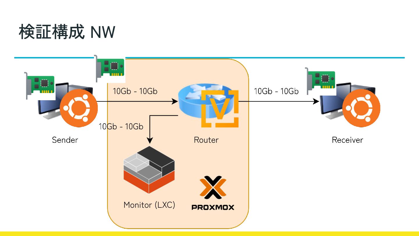 • 計測手法の確立: 10Gbps環境を想定した、CPU負荷やパケロス率のモニタ リング手法を確立する