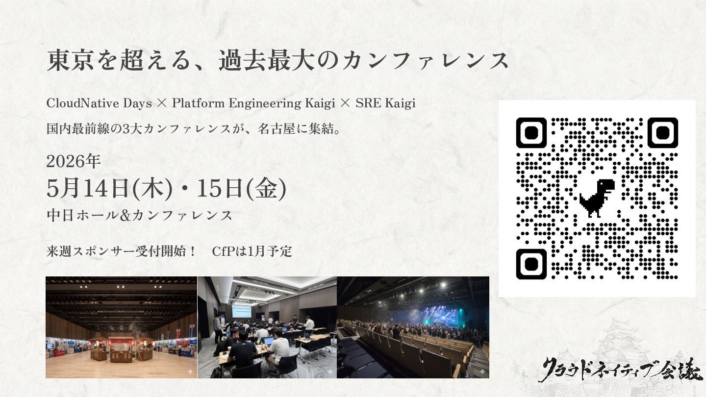 国内最前線の3大カンファレンスが、名古屋に集結。 2026年 5月14日(木)・15日(金) 中日ホール&カンファレンス 来週スポンサー受付開始! CfPは1月予定