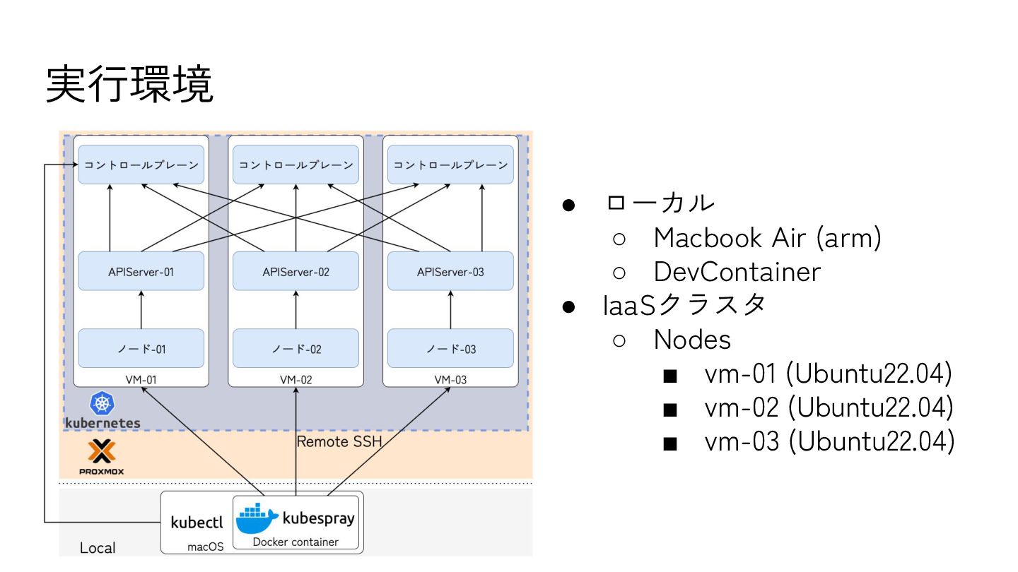 IaaSクラスタ ◦ Nodes ▪ vm-01 (Ubuntu22.04) ▪ vm-02 (Ubuntu22.04) ▪ vm-03 (Ubuntu22.04)