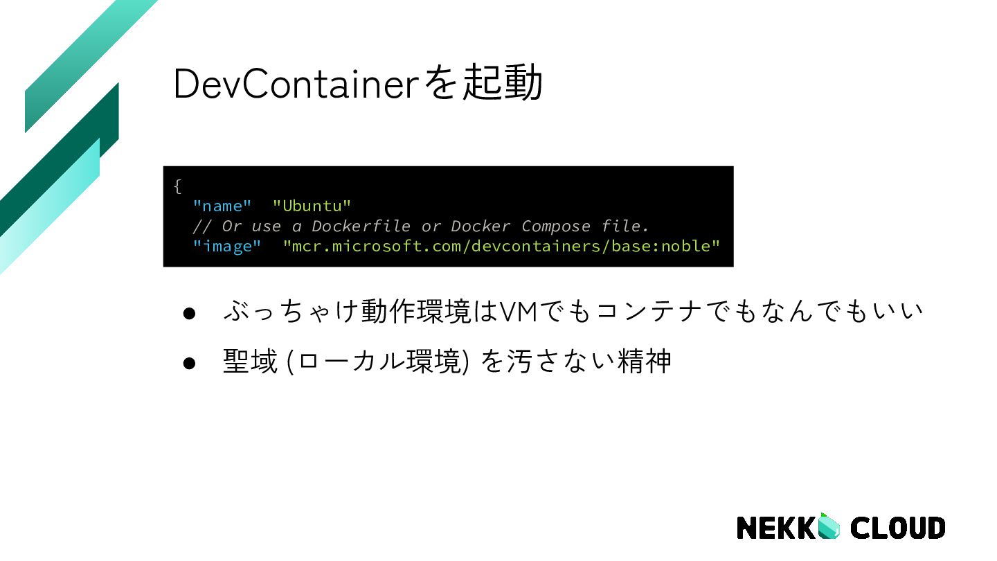 2. 実行環境 • ローカル ◦ Macbook Air (arm) ◦ DevContainer •
