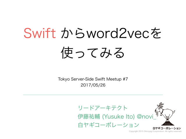 $PQZSJHIU4IJSPZBHJ$PSQPSBUJPO"MMSJHIUTSFTFSWFE ࠓճͷϦϙδτϦ • https://github.com/novi/word2vec-swift