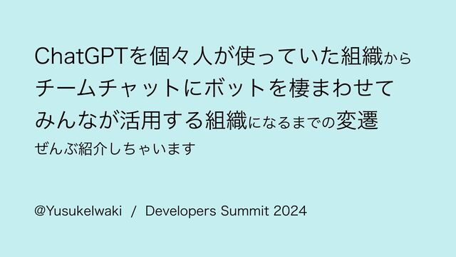 $IBU(15Λݸʑਓ͕͍ͬͯͨ৫͔Β νʔϜνϟοτʹϘοτΛ·Θͤͯ ΈΜͳ͕׆༻͢Δ৫ʹͳΔ·Ͱͷมભ ͥΜͿհͪ͠Ό͍·͢ !:VTVLF*XBLJ%FWFMPQFST4VNNJU