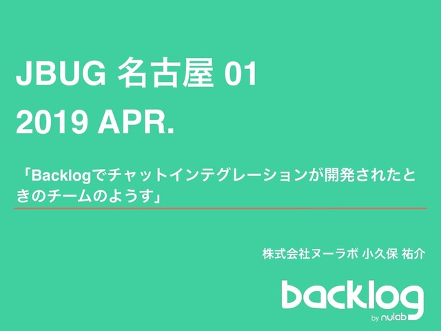 JBUG ໊ݹ 01 2019 APR. ʮBacklogͰνϟοτΠϯςάϨʔγϣϯ͕։ൃ͞Εͨͱ ͖ͷνʔϜͷΑ͏͢ʯ גࣜձࣾψʔϥϘ খٱอ ༞հ