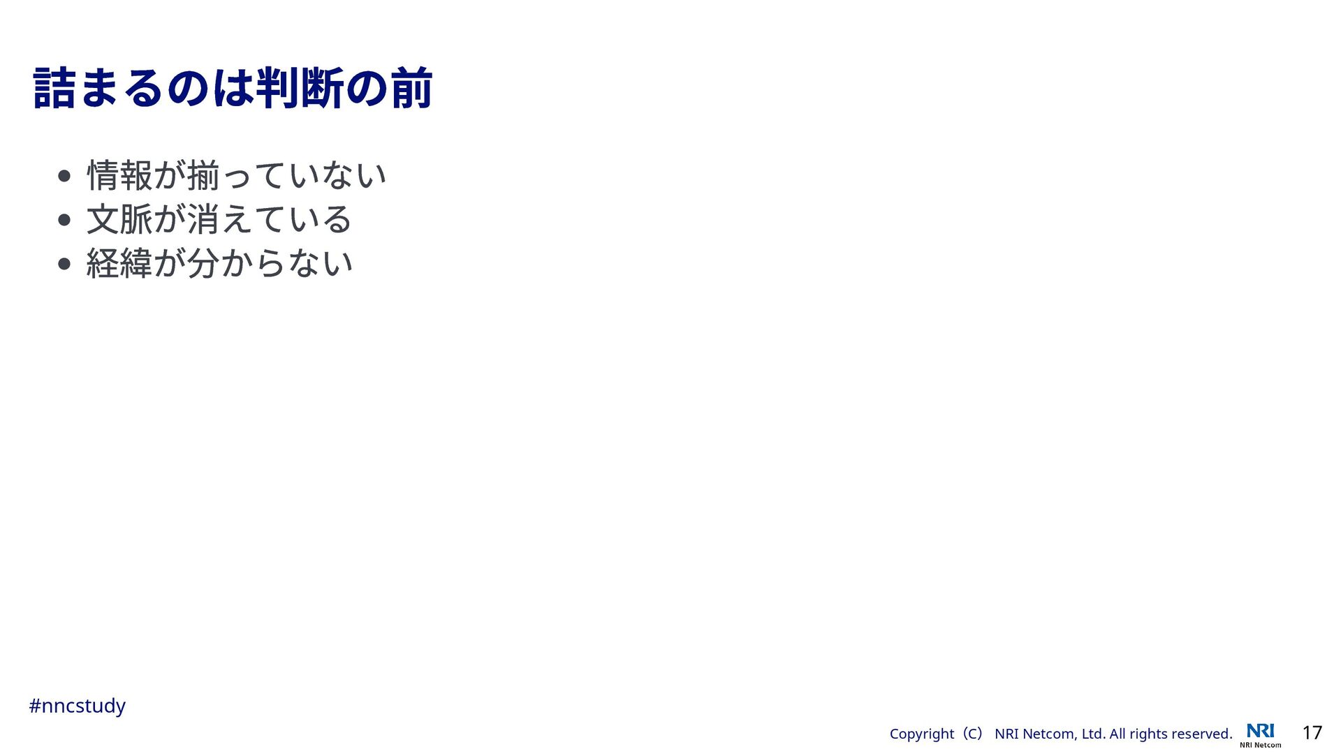 情報が揃っていない 文脈が消えている 経緯が分からない #nncstudy 17