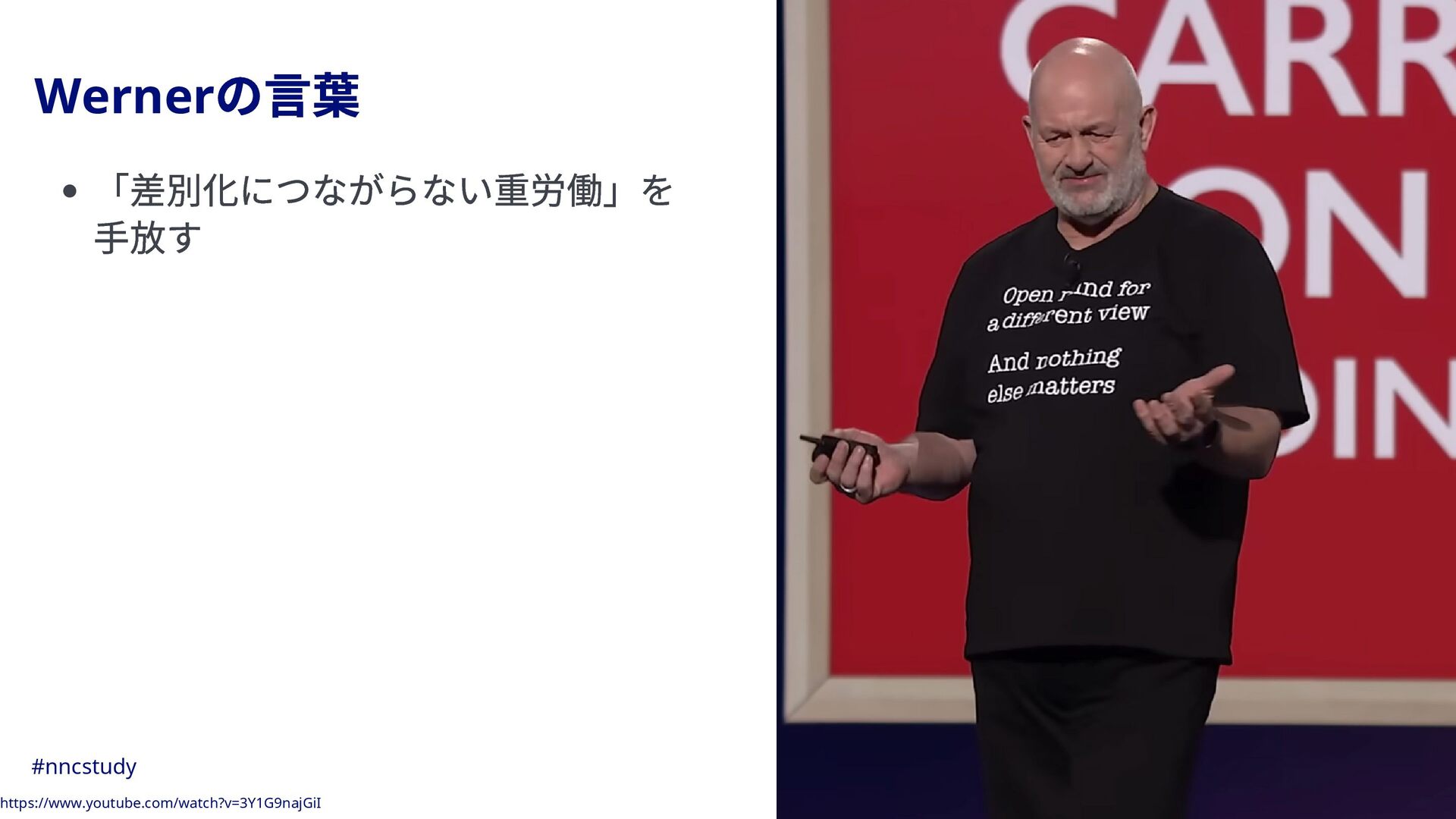 の言葉 「差別化につながらない重労働」を ⼿放す #nncstudy 9 https://www.youtube.com/watch?v=3Y1G9najGiI